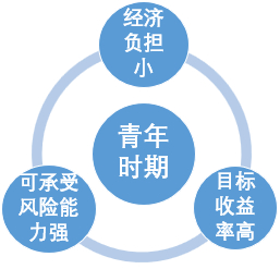 青年时期以结婚为界可分成两个阶段,从参加工作到结婚这段时间的青年人没有抚养老人和小孩的任务,经济压力较小,可承受风险能力较强,更加进取,富有挑战精神,目标收益率希望比定期高6%-9%,更倾向于投资高收益的产品,因此股票型ETF是理想选择。