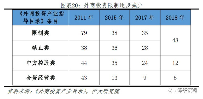 2018年,我国推出了一系列更高水平的对外开放举措,大幅放宽金融业和部分制造业的对外开放水平。其中,银行业放开外商投资的比例限制,证券和保险业制定了对外开放的时间表,三年之后取消外商投资的股比限制,汽车制造业承诺2020年取消外商投资的股权比例限制,2022年取消外资企业可在国内建立最多两家生产同类整车产品的合资企业的限制。