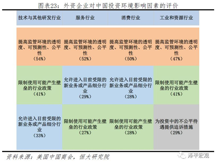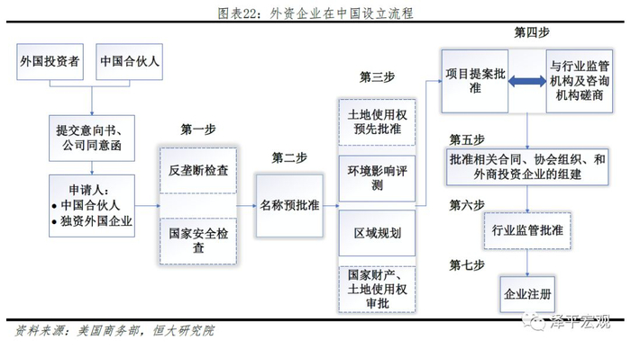 我们建议适当简政放权,简化外资企业注册手续、生产经营相关审批,压缩消防、环评、用地审批、水电气接入、进出口通关的时间。对行业的许可证管理实施流程化、标准化审批管理程序,尽量减少审批过程中的自由裁量空间。