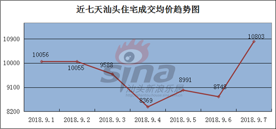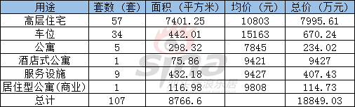 新浪乐居汕头讯 据联广数据机构统计,2018年9月7日汕头楼市成交一手107宗,其中,高层住宅成交57套,成交均价10803元;车位成交34个,成交均价15163元;公 寓成交5套,成交均价7845元;酒店式公 寓成交1套,成交均价9421元;服务设施成交9套,成交均价9427元;居住型公 寓(商业)成交1套,成交均价9808元。总成交面积为8766.6平方米,成交总金额18849.03万元。