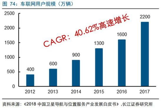 汽车导航作为连接大众消费和北斗导航最为契合的关联点,是撬开北斗大众消费市场的重要支点,以车联网为载体的连接形式将是汽车业信息化的发展方向。2017年,我国车联网用户突破2200万,同比增长37.5%,按机动车保有量3.1亿计算渗透率达到7.1%,车联网硬件市场规模达到264亿。2017年2月国内首款高精度车用北斗芯片发布,成功实现米级定位精度和3秒钟快速定位,开启我国汽车业米级导航时代。未来车用北斗芯片的应用将助力地图导航定位、互联网约车、车辆监控、物流调度服务、汽车租赁和汽车综合服务等业务。