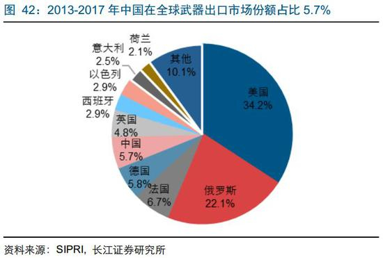 根据瑞典斯德哥尔摩和平研究所(SIPRI)报告显示,2017年全球武器出口额约为1320亿美元,其中我国出口额约为90亿美元。2013-2017五年间我国在全球武器出口市场份额占比为5.7%,相比2008-2012年间增长38%,我国对外军售呈现出高速上升的趋势。我们认为北斗卫星导航系统将通过北斗导航定位板卡、模组终端和配备在相应武器上等形式,实现北斗卫星导航系统在外军事装备上的销售,而巴基斯坦亚洲国家等作为我国出口的主要市场,北斗导航系统有望在亚太军备市场实现突围。我们假设整个北斗占对外军售比重的1%,外贸军售保守将带来北斗军品5-6亿人民币的市场增量。