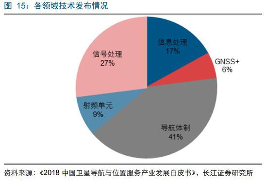 目前,北斗全产业链所有的关键元器件已经基本实现了国产化。截止2017年底,我国卫星导航专利申请累计总量已突破5万件,首次跃居全球第一位。在关键元器件上实现历史性突破,自主研发出28nm北斗兼容芯片,最低单片价格仅6元,总体性能达到甚至优于国际同类型产品。2017年国产高精度板卡和接收机天线销量已分别占国内市场份额的30%和90%。