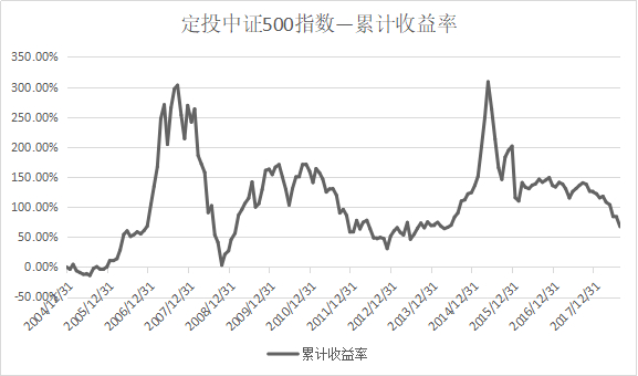 在这里,还是借用当时定投中证500指数的累计收益率走势图。
