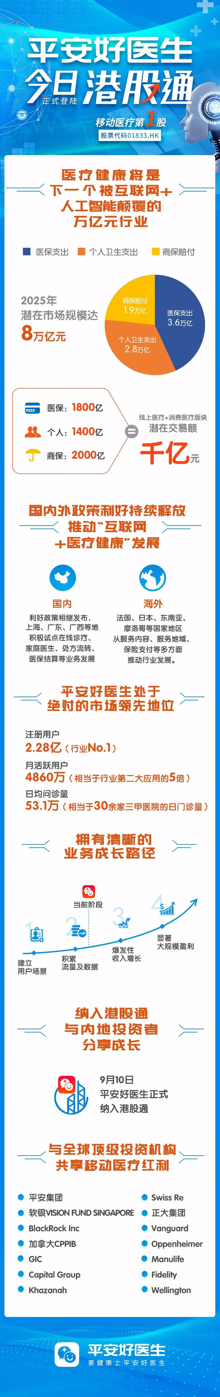自9月10日起,国内领先的一站式医疗健康生态平台平安好医生(01833.HK)正式纳入港股通,中国大陆符合要求的投资者可通过境内A股账户,直接参与平安好医生的投资与交易。