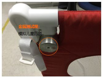 ▲金属测试规:模拟儿童四肢儿童四肢可能会被卡在间隙里造成勒伤或充血!