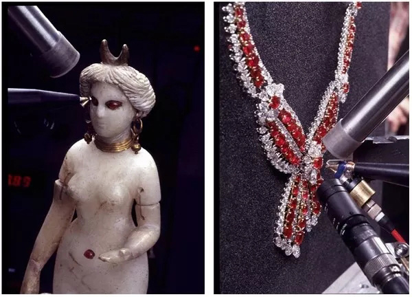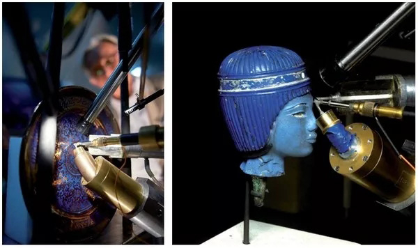 古文物中充满了谜题:它们的材料是从哪里来的?它们制造的秘密是什么?如何保存和恢复它们?卢浮宫博物馆1931年就建立了研究实验室(LRMF),研究实验室的主要目标是研究艺术和考古物品的创作所涉及的材料和技术,例如生产方法、来源研究、认证和保护。初期阶段,实验室检测博物馆收藏的绘画用的是光学显微镜、紫外线或红外光或X射线照相等手段。到了20世纪60年代,随着考古学的发展,多种光谱技术被应用于艺术品和考古物品的分析,包括紫外光谱法、X射线荧光光谱法,甚至是X射线衍射法。