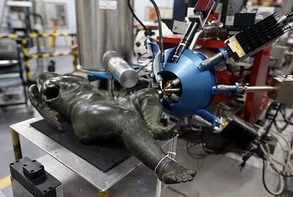 首批接受新AGLAE检测的艺术品是一批古罗马的铜雕像。这些雕像1969年在邻近比利时边界的巴维(Bavay)古罗马城镇广场出土,当时在一个麻袋里发现了370多件被严重腐蚀的青铜制品,很可能是罗马帝国成立之初至大约3世纪的古文物。这些物品是古代铜工匠的收集物?是某次战争的战利品?还是属于某个宗教的存货?新AGLAE的检测可以提供一些线索来确定这些神秘宝物的起源地、制作技术等。