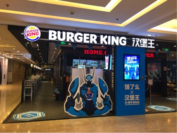汉堡王在上海普陀区118广场的门店最近变了样,为庆祝饿了么十周年,汉堡王将其118广场门店打造成为饿了么与汉堡王的联名快闪店。