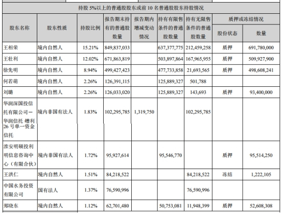 半年报显示,利欧股份前十大股东质押凶猛,其前十大股东中的六大股东累计质押19.42亿股。其中:利欧股份第一大股东王相荣质押6.92亿股,第二大股东王壮利质押5.10亿股,第三大股东徐先明质押4.99亿股,第五大股东刘璐质押9340.00万股,第七大股东淮安明硕投利明信息咨询中心(有限合伙)质押9551.43万股,第十大股东郑晓东质押5260.83万股。