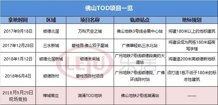 据乐居统计,加上本宗出让地块,佛山目前共有5宗TOD地块落实。