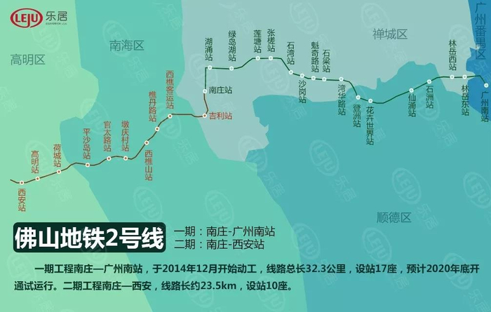 目前佛山地铁2号线一期工程在建中,计划2020年底试运行。东西连接广佛两城,途经4区7镇街,主要包括南庄站、湖涌站、石洲站、广州南站等。二期工程将向西进入南海西樵、高明,设站10座,目前正在报批中。