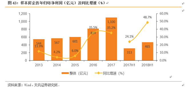由于净利润增速远超营业收入,44家样本房企净利润率也大幅提升,由2017年上半年的12.0%提升至2018年上半年的14.2%。