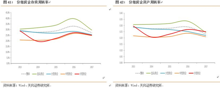 分组来看,我们发现龙头房企和大型房企的投资活动现金流出要远大于中小型房企,这与行业集中度快速提升的大背景下,大型房企不断收购中小型房企的项目的现象相一致。