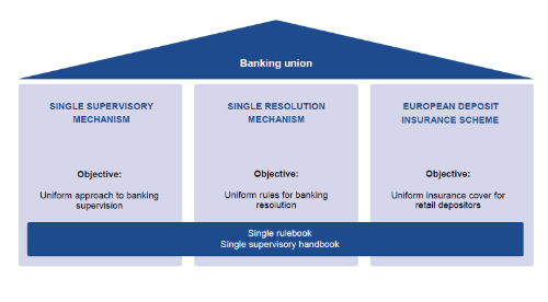 欧洲银行业联盟具有三大支柱:单一监管机制(SSM)、单一清算机制(SRM)和欧洲存款保险计划(EDIS),其中单一监管机制主要针对大型银行,监管权归欧洲央行。在单一清算机制方面则建立了规模在550亿欧元的清算基金,提供了集中处理大型银行问题的办法,不过考虑到欧洲大银行的负债均在几千亿欧元,一旦真的出现挤兑现象,这一单一清算基金的规模并不能稳定市场信心。