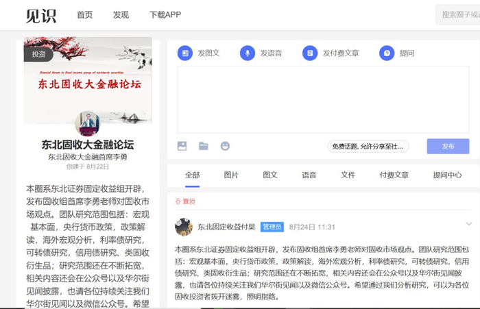 在观点传播上,我们也不甘人后。我们与各大研究平台合作,发布观点并制作网络课程,服务市场的同时,不断深耕基础领域,我们不断扩大研究的范围,提升研究的质量,研究范围涵盖:宏观经济、利率债、可转债、海外、信用研究。除了正常的报告投放,我们还充分利用各种传播渠道:邮件投递、今日头条、华尔街见闻、投研社、进门财经、同花顺、机会宝、wind等等都是我们传播知识,服务客户的舞台。