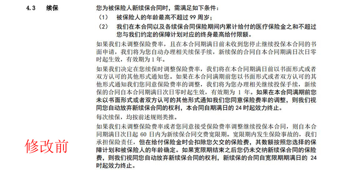刘生认为,该条款的修改,相当于从终身保证续保变成了自动续保。