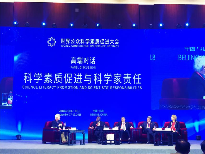 9月17日,世界公众科学素质促进大会开幕。图为大会“科学素质促进与科学家责任”高端对话。郭静原摄