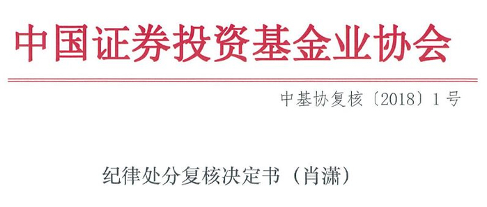 综上,基金业协会维持原纪律处分决定,驳回其复核申请。肖潇被取消基金业从业资格,拉入黑名单三年。