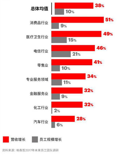根据埃森哲的预测,在未来5年里(2018年~2022年),如果所有企业能够像领军企业一样积极投入人工智能和人机写作,有望把企业的收入提高38%(消费品和医疗卫生行业将高达50%),员工规模则将增长10%。