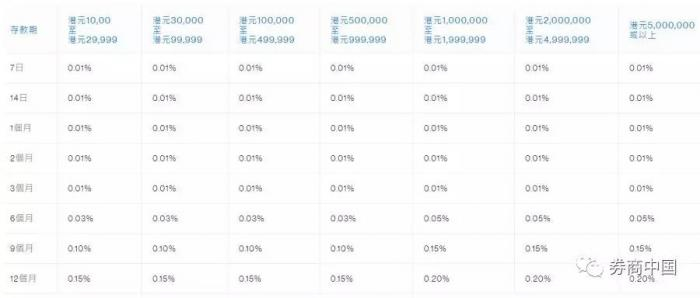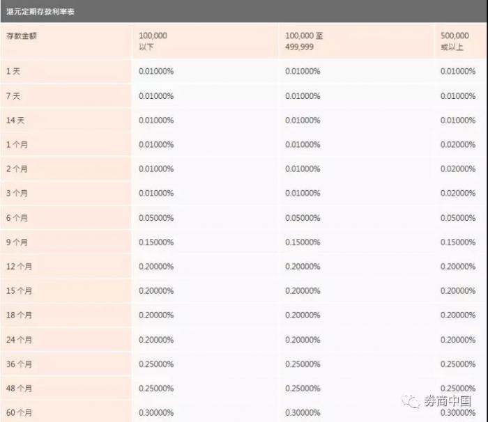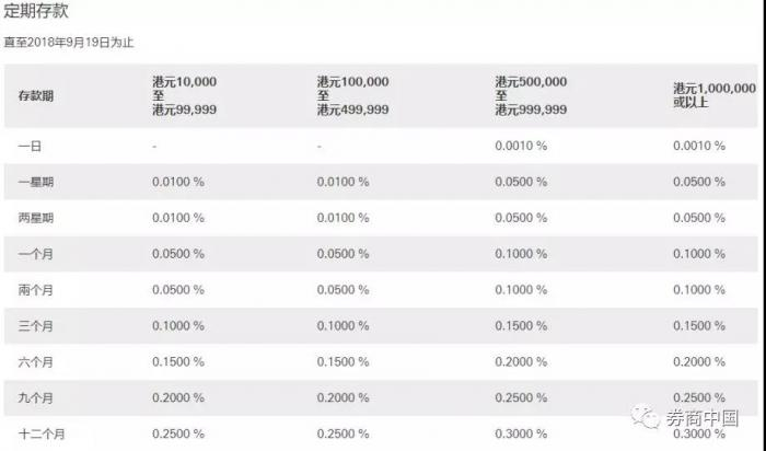 渣打银行(香港)有限公司的港币活期存款利率和定期存款利率水平表: