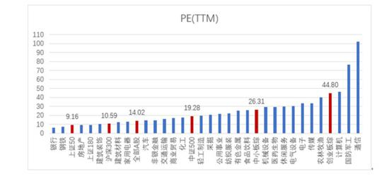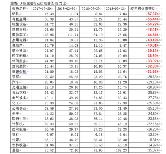 图表:A股主要指数及行业最新估值情况(截止2018-9-13)