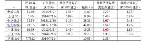 图表:最近10年A股指数市盈率溢价变化