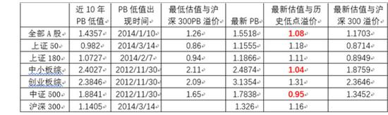 图表:最近10年A股指数市净率溢价变化
