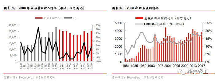 整合完成以后,公司聚焦主业,净利润较重组之前大幅提升,盈利能力增强。净利润在2005年以后回升达到11亿美元,且在2008年金融危机之前的几年里都维持了10亿美元以上的利润额。