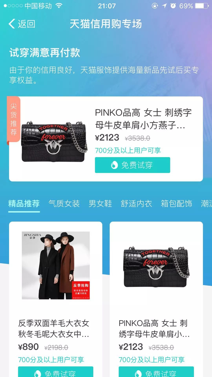 芝麻信用分达到700分以上的用户,可以开通“先试后买”的服务权益。