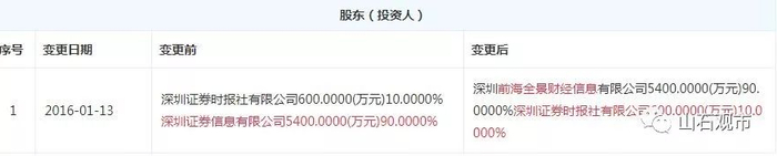 随后,2016年1月13日,深圳证券信息有限公司甩卖了深圳市全景网络有限公司90%的股权,作为对巡视指出问题的整改措施。