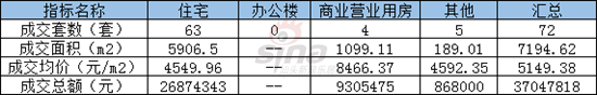 从二手房成交区域看,金平区成交36套,龙湖成交22套,濠江区成交1套,潮阳区成交2套,潮南区成交1套,澄海区成交8套,南澳县成交1套。