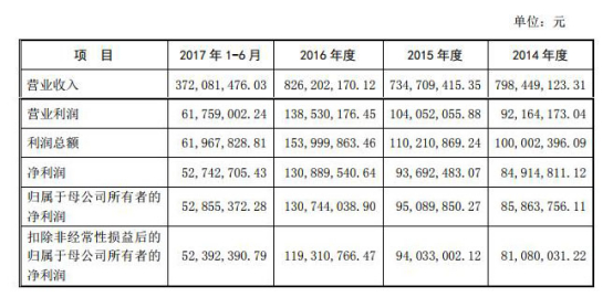 根据宁波水表最新的招股书,公司在2014年末、2015年末、2016年末和 2017年6月末,实现营业收入分别为7.98亿元、7.35亿元、8.26亿元和3.72亿元,2015年度营业收入较2014年略有下降,2016年度较2015年度略有上升。