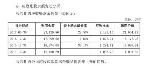 报告期内,宁波水表应收账款账面金额较大。2014 年末、2015 年末、2016 年末和 2017 年 6 月末,公司应收账款账面金额分别为 11093.58 万元、14989.94万元、16177.28 万元和 21004.71 万元,占同期公司总资产的比例分别为24.94%、30.98%、26.28%和 33.52%。