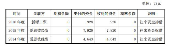 另外的关联方资金拆借则是在2014年度、2015年,宁波水表与宁波爱恩彼经贸股份有限公司(简称“爱恩彼经贸”)的资金往来。