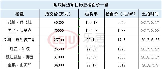 周边项目历史楼面价(2017年至今)