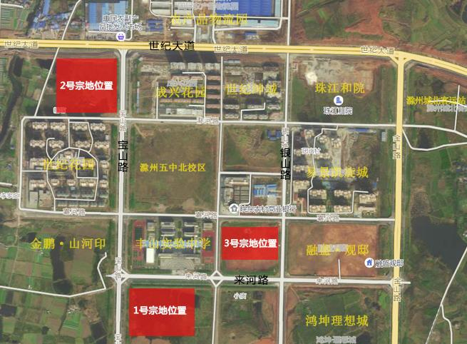 就地块本身而言,从位置图中可以看出,这3宗宅地均位于滁州琅琊新区,周边在售、入住楼盘项目云集,随着城市发展,配套相对完善。