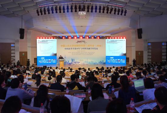 新浪财经讯 9月29日,以“中国改革开放40年与中国金融学科发展”为主题的中国人民大学金融学科第二届年会(2018)在京举行。本次会议由中国人民大学主办,财政金融学院、商学院、经济学院、汉青经济与金融高级研究院、重阳金融研究院、金融与证券研究所、中国普惠金融研究院联合承办。中国人民大学金融学科师生、兄弟院校单位、社会金融研究机构专家学者、媒体代表近500人参会。