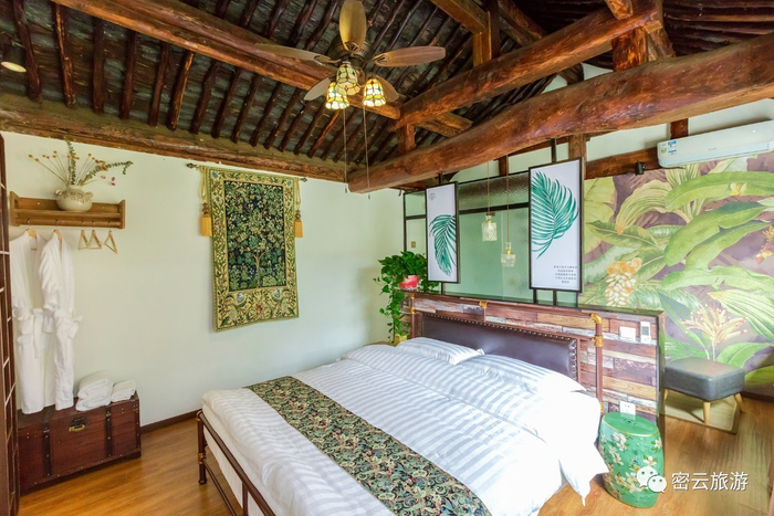 目前小院已完全落成,9个可住宿的房间加一处榻榻米,其中3个房间由百年老屋改造而成,施工改造中,最大限度上保留了老房子原貌,给每一根房梁以尊重,使岁月的痕迹未曾抹去分毫。另外,还加建了1个二层树屋,1个loft,2个美式全景卧室,还有1个独立的跨院,包括3间卧室,大客厅及书房。公共区域,打造了美式风格的西餐厨房,烤箱、咖啡机一应俱全,顶到房梁的书架。你可以去菜地采摘,然后自己diy做个沙拉,烤个面包,也可以在这里自己煮杯咖啡,看看书扯扯闲篇儿后院有一个休息的小厅,通往儿童区,在这里,专门为孩子准备了大量的绘本和玩具,孩子们可以在这里看书,画画,玩游戏,把孩子们“丢”在这里,你尽可以安心去偷懒。同时,还有一处开放式露台,用于看电影、打鼓、画画、读书、烘焙等各种沙龙活动,当然,还兼能烤肉喝酒大快朵颐。