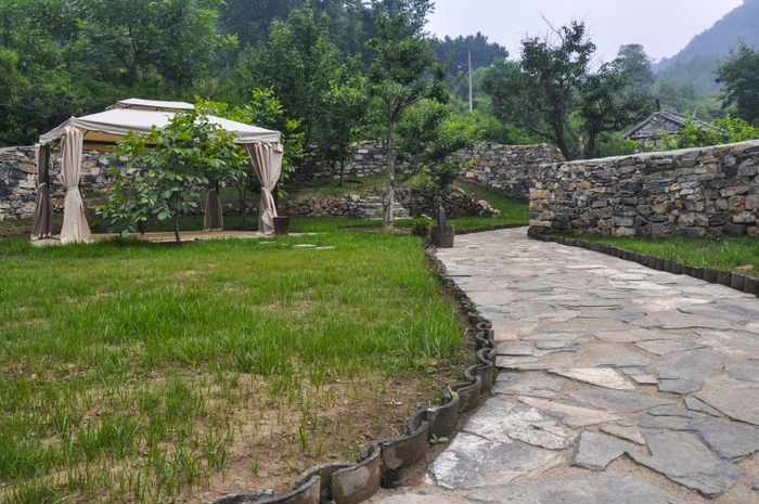 来到京郊密云,就已经逃离了城市的喧嚣,远离了人群的浮躁,只有青山绿水静静地从身边掠过,心灵寻找到了久违的归属感。沿着蜿蜒的小路,路过几处宁静的村庄,在幽幽的山谷中前行不久,位于北庄镇干峪沟村的山里寒舍到了。