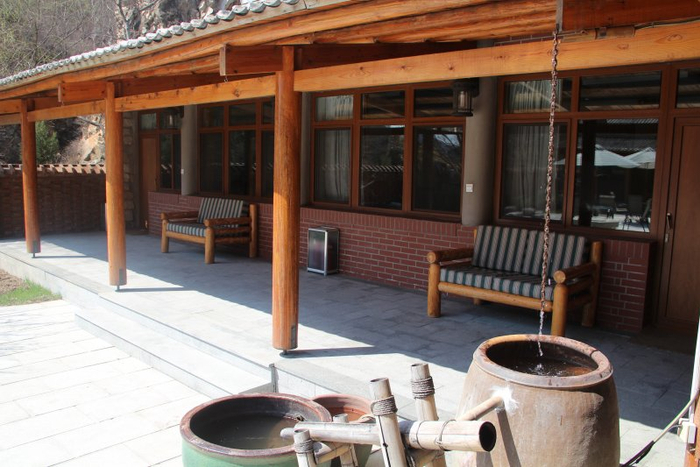 山里寒舍的20多处院子散落在山水自然与古村落的交叠之中,每一间房子都是在原有村舍的基础上改造而成的,房屋的木门、木窗、椽子,还有院里的石头墙都得到了原汁原味的保留;房间里面却是精装修,星级的客房布置及现代化的卫浴设施、双层的塑钢玻璃门窗、地采暖设施一应俱全,不少房间还安装了阳光棚。另外,通过房间里的家具摆设不难发现,设计者当初颇费了一番心思,衣柜、条案、桌子等家具,大多是从村民手里淘来的老物件,透着悠久的乡舍韵味。