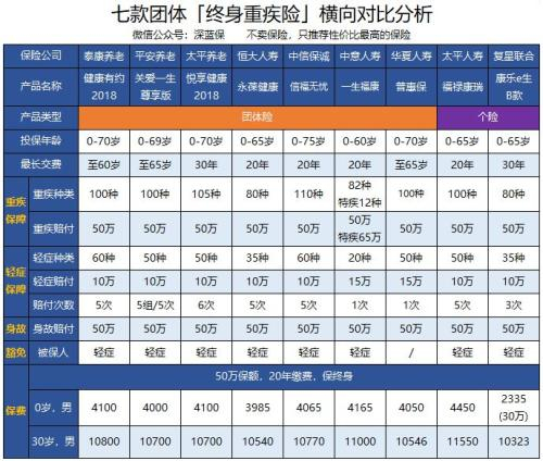 为方便对比,深蓝君还加了 2 款无需组团,个人可以直接购买的终身重疾险: