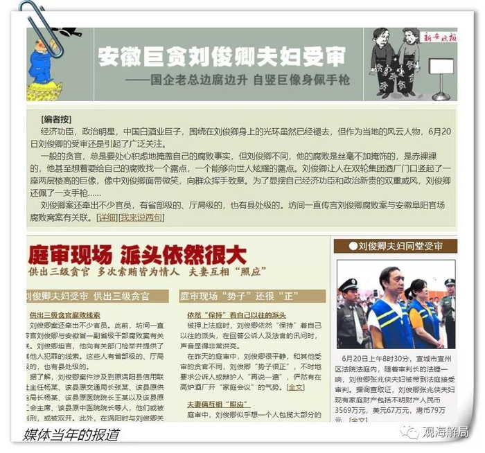 当时,媒体曾称刘俊卿为“安徽第一贪”,因为他是从建国到2006年之间,安徽省涉案金额最大的职务犯罪案件被告人。