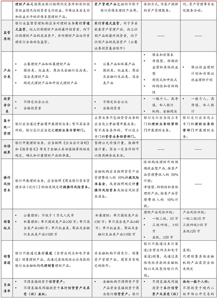 3、适用于银行尚未通过子公司开展理财业务的情形,后续单独成立的银行理财子公司开展理财业务主要遵循后续将颁布的《商业银行理财子公司管理办法》;