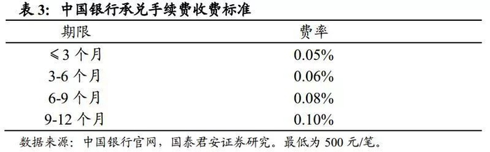 以中国银行的承兑汇票承兑手续费为例,费率如下。需要注意的是,这仅是办理该业务需支出的手续费,还有部分费用作为承诺费记在担保承诺业务中。