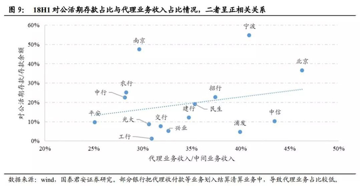 (1)存量是指收付款、结算、委托贷款等业务,这类业务核心在于当地企业、政府、事业单位资源。一旦获客成功,往往能保持长久稳定的收入水平,因为不同银行间迁徙成本过高,政府、事业单位很难有迁徙动力。这就使得,长期在地方耕耘的城商行有比较优势。此外,代理类业务也能为银行带来低成本的对公活期存款。