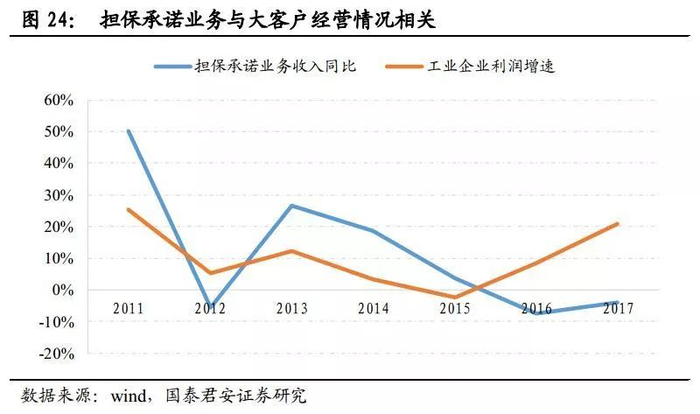 为了和对公客户尤其是大客户维护好关系,银行会对其开具贷款承诺书。因此,此类收入与宏观经济尤其是规模以上企业高度相关。另一方面,也要考虑银行的信贷投放意愿。