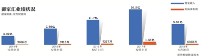 但对比单一财务指标,更能反映公司基本面状况的净资产收益率(加权)却呈下降趋势,2014年、2015年、2016年、2017年和2018年1-6月该数据表现分别为94.74%、41.75%、27.59%、34.43%和5.97%。