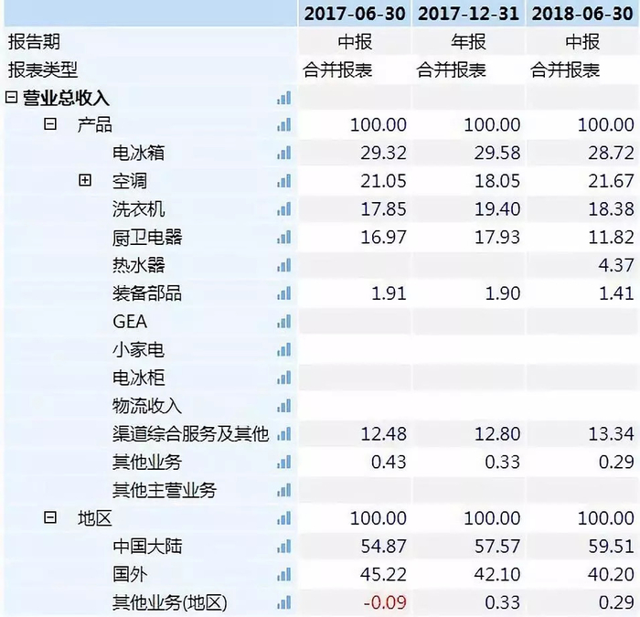 2018年上半年,卡萨帝空调16,000元以上价位段份额45%、卡萨帝滚筒洗衣机在10,000元以上价位段份额73.8%、卡萨帝冰箱10,000元以上价位段份额占比36%;2017年GEA高端家电品牌MONOGRAM在美国高端市场份额达到20%;全球顶级家电品牌Fisher&Paykel在新西兰高端份额达到36%。