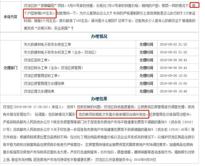 就清水部分来说,不少楼盘也有一定幅度的上涨,但是这似乎是有政策依据的。在2016年10月1日成都市人民政府办公厅发布的《关于促进我市房地产市场平稳健康发展若干措施的通知》中,明确规定了“商品住房申报价格明显高于周边楼盘的,价格主管部门会同相关部门对价格进行核实后,方予受理商品房预售许可、现售备案申请;同一项目分期建设销售的,价格增速不得高于城镇居民人均可支配收入增速。”言下之意,价格可以上涨但要合理,不能随意涨价。比如2018年上半年成都城镇居民人均可支配收入同比增速为8.4%,预计全年的增速也大致是这个水平(2017年的增速就是8.4%)。8.4%是什么概念呢?比如你一期的均价是11000元/平米,二期就可以卖=11000*1.084=11924元/平米,依此类推。这大概就是下图中“每批次开盘价格符合相关规定”的依据。